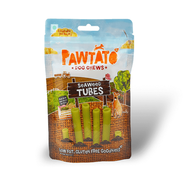 Pawtato Tubes with Seaweed are a delicious Low Fat, hypoallergenic treat for your dog. These fun tube shaped chews can be carefully stuffed with dog friendly goodies, such as peanut butter
