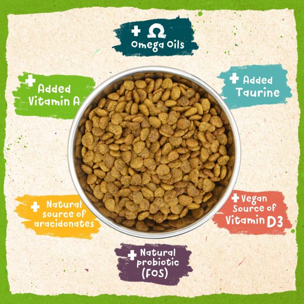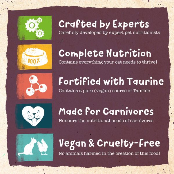 100% vegan dry food developed for adult cats. Meets AAFCO & FEDIAF standards for daily feline nutrition.