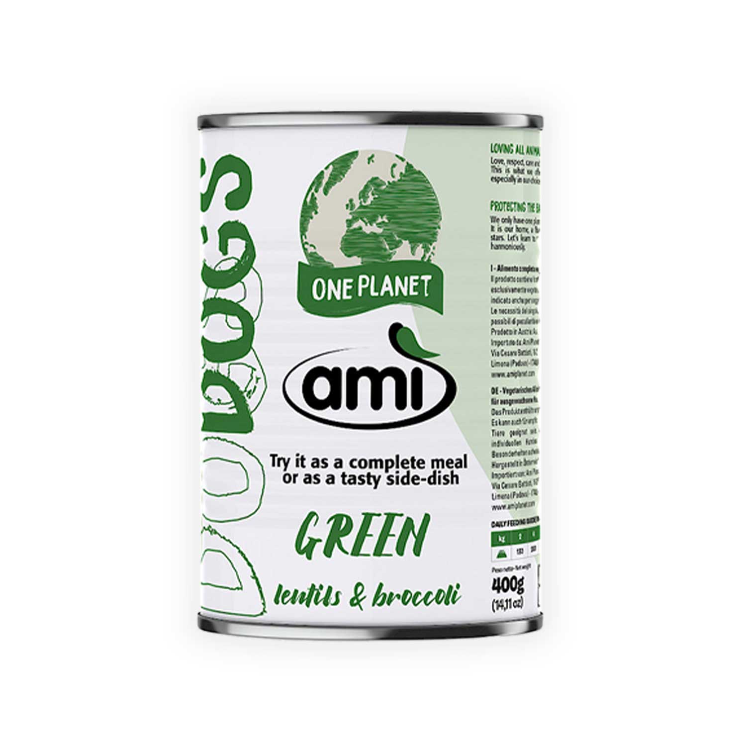 Ami Dog Green is a nutritious and complete vegan moist wet dog food. With a special wheat-free recipe, ideal for dogs who are predisposed to food sensitivities. Made from a delicious blend of highly nutritious broccoli, lentils, spinach, courgettes and pea protein.
